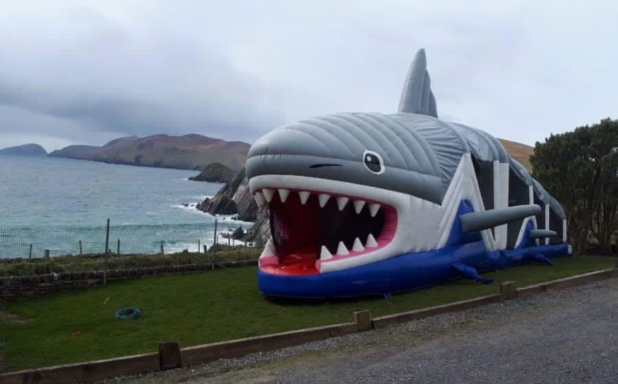 Get ready to make a splash at your next event with our huge shark-style inflatable obstacle course! This unique and exciting bouncy castle is sure to be a hit with guests of all ages.
